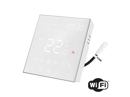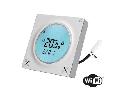 HD-T05/W-WiFi – programovatelný pokojový termostat s LCD displejem a funkcí dálkového ovládání elektrického vytápění pomocí telefonu nebo tabletu.